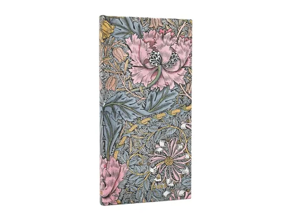 2026 Paperblanks diář 12 / Morris Pink Honeysuckle / Slim / Horizontal