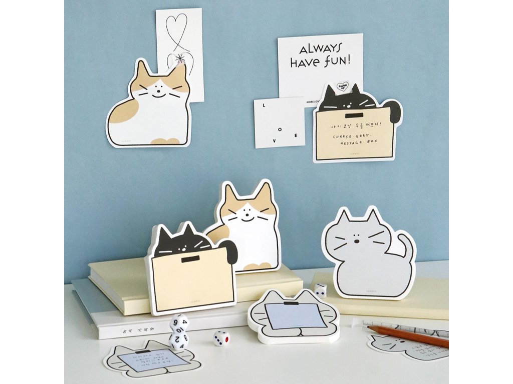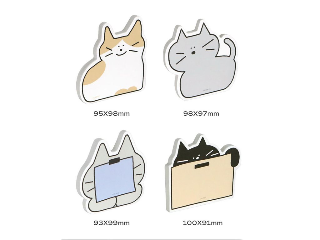 Vyřezávané tvary s kresbou kočky. Kompaktní, lehký formát. Ideální pro poznámky, diáře a zprávy.