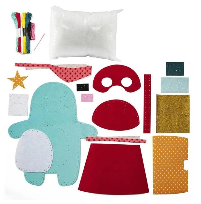 Díky předpřipraveným dílům, jednoduchým návodům a bezpečným pomůckám si děti mohou vyzkoušet šití vlastního výrobku – například malého kamaráda, který je bude provázet i dále.