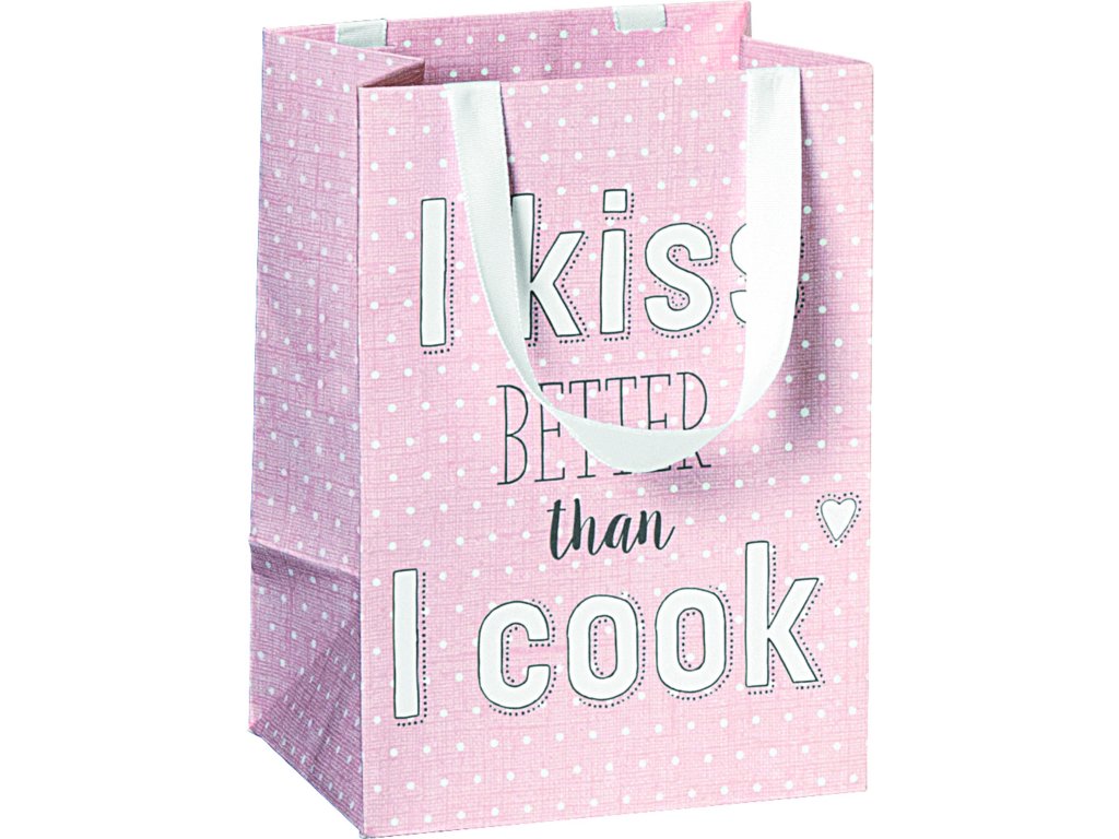 Dárková MINI taštička 10x8x14cm A6+, Líbám lépe než vařím