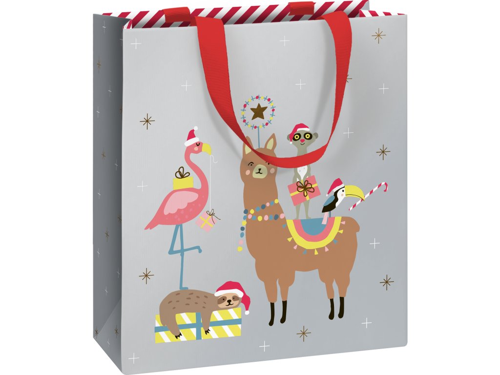 Stylová vánoční taška pro děti. Lama a její přátelé na krásném kvalitním papíru. Stewo vám nabízí širokou škálu dárkových tašek pro perfektní dárek. V zářivých plných barvách zabalené dárky jistě okouzlí každého.. - Dárková stylová taška - Originální dárkové tašky - Designová papírová taška na dárky - Dárková taška pro děti - Papírová taška s motivem - Papírová taška vánoční - Narozeninová designová dárková taška pro děti - Dárková taška na balení dárků pod vánoční stromeček Jay silber FSCDoplňkové parametry