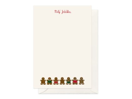 Dvojitá karta z vysoce kvalitního papíru, barva přírodní bílá, obálka Motiv perníčků tištěn barevným ofsetem a zlatým ocelotiskemRozměry: 105 x 148mm