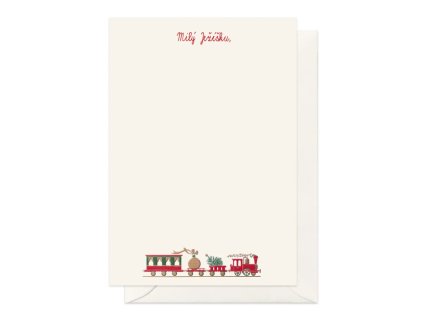 Dvojitý arch A5 z vysoce kvalitního papíru, barva přírodní bílá, obálkaMotiv vláčku tištěn červeným, zeleným ofsetem, zlatým ocelotiskem a slepotiskemObálka s nápisem "Dopis...
