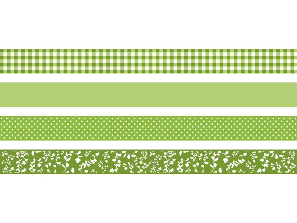 Dekorační papírová páska 1.5 cm x 5 m kiwi - 4 motivy