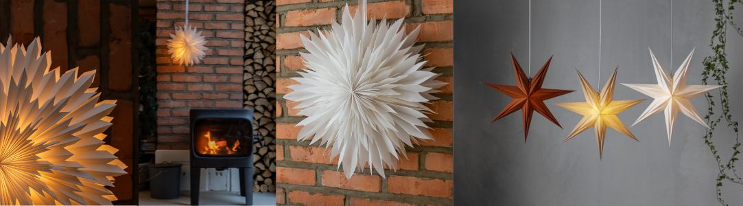 Vyberte si mezi bílými, barevnými, kulatými, velkolepými nebo strohými. Hvězdy mohou zdobit interiér jen tak bez světla, ale pokud jim chcete dodat ještě větší kouzlo, doporučujeme dát dovnitř hvězdy světýlka nebo LED žárovku. Při doplnění světelným zdrojem poskytují jemné světlo a navodí příjemnou atmosféru.