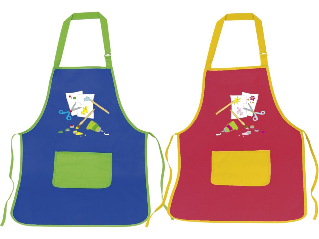 Dětská zástěrka 50x75cm - 2 barevné kombinace - Červená/žlutá nebo modrá/zelená (barevnou kombinaci si můžete vybrat a napsat do poznámky na objednávce) - 100 procentní bavlna - Velká našitá kapsa - Nastavitelný popruh u krku - Školní potřeby - Malování a děti - Výtvarné pomůcky - Škola výbavaDoplňkové parametry