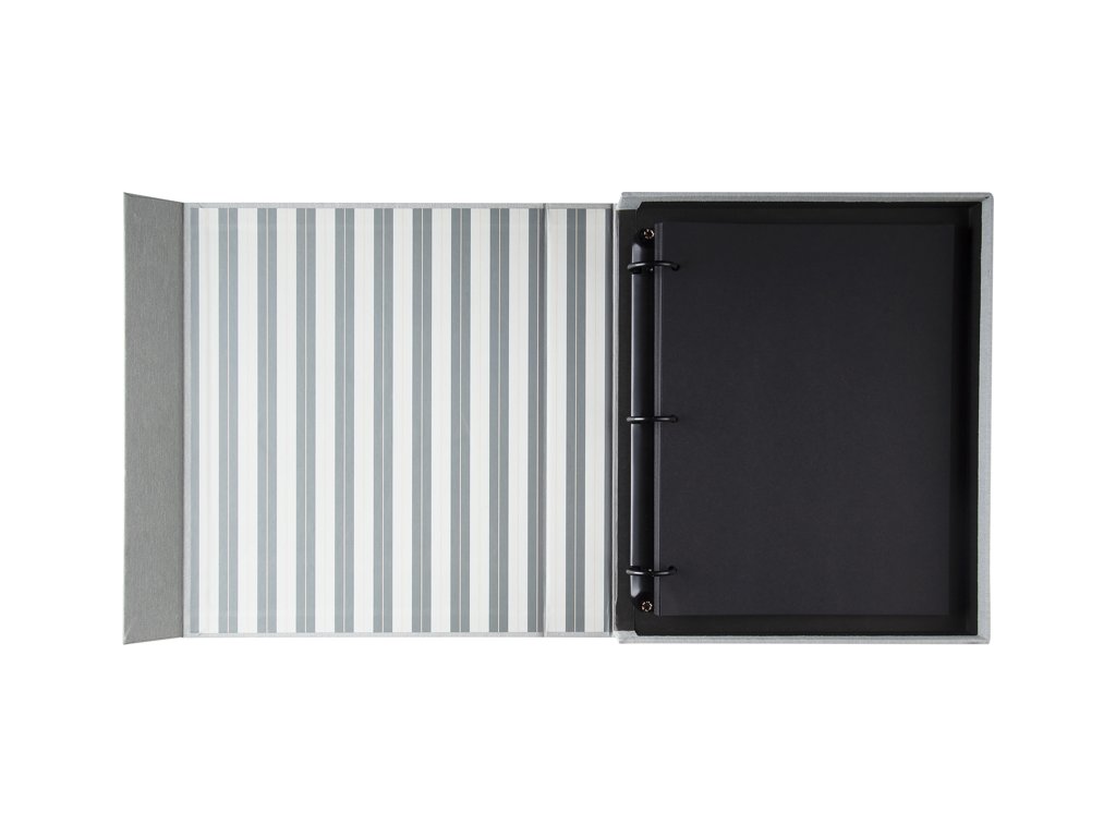 Když jej otevřete - otevře se podobně jako krabice - najdete v něm 30 stran na kvalitním černém fotopapíru. Do této velké verze fotoalba se vejdou dvě fotografie 10x15 na stránku s dostatečným prostorem pro napsání komentáře.