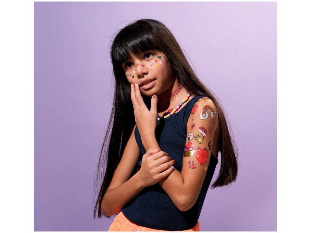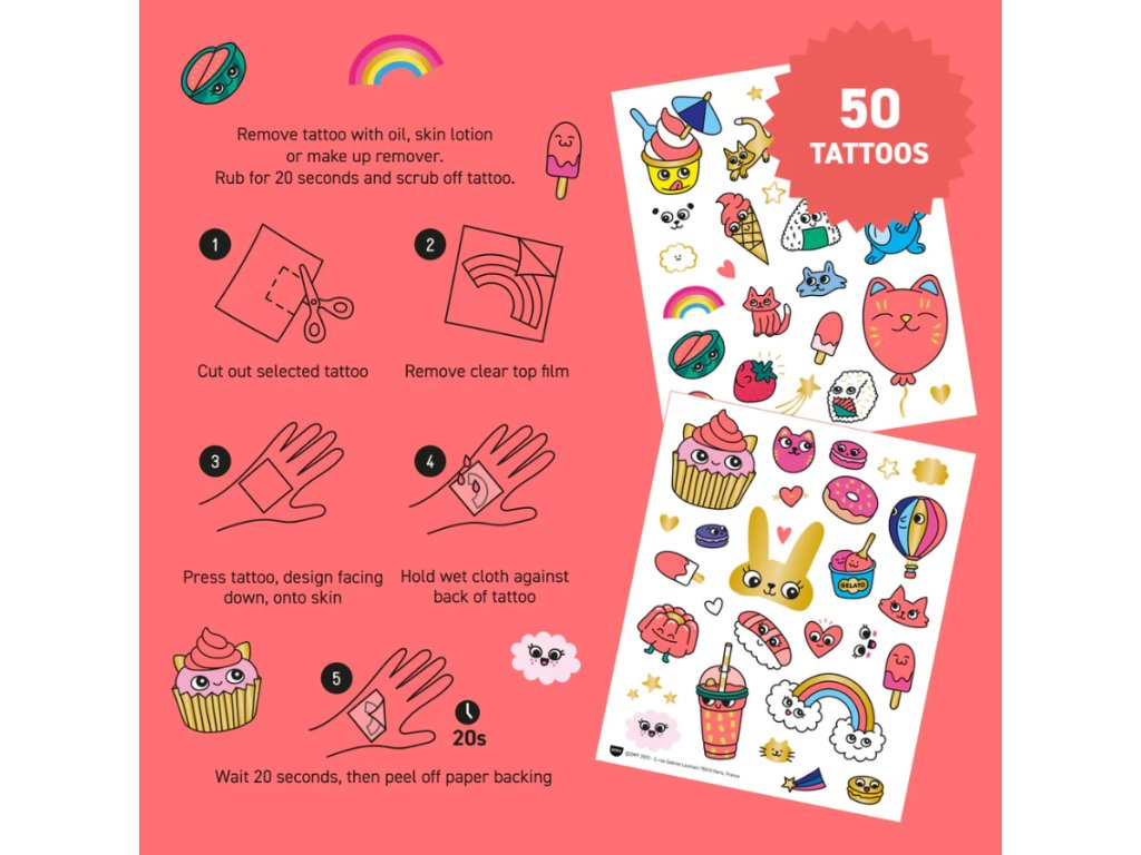 V tomto rozkošném balení najdetev 50 fluorescenčních, zlatých a barevných smývatelných tetování, která si můžete po celý rok lepit po celém těle. Tetování se snadno používají, jsou odolná a dermatologicky testovaná. Vhodné pro děti od 3 let