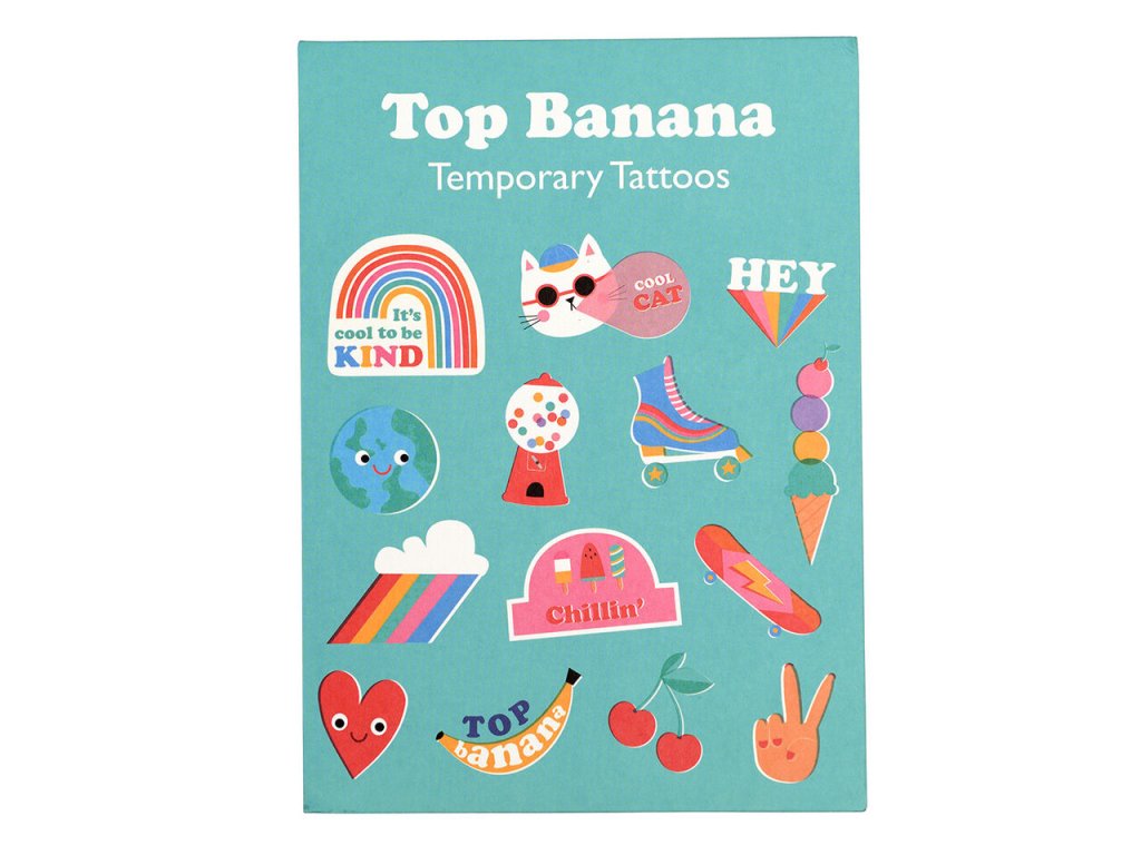 Tato dočasná vílí tetování Top Banana obsahují vtipné tetovačky, které si zamiluje každé dítě. - Obsahuje dva archy dočasných tetování - Různé velikosti -Není určeno pro děti do 3 letDoplňkové parametry