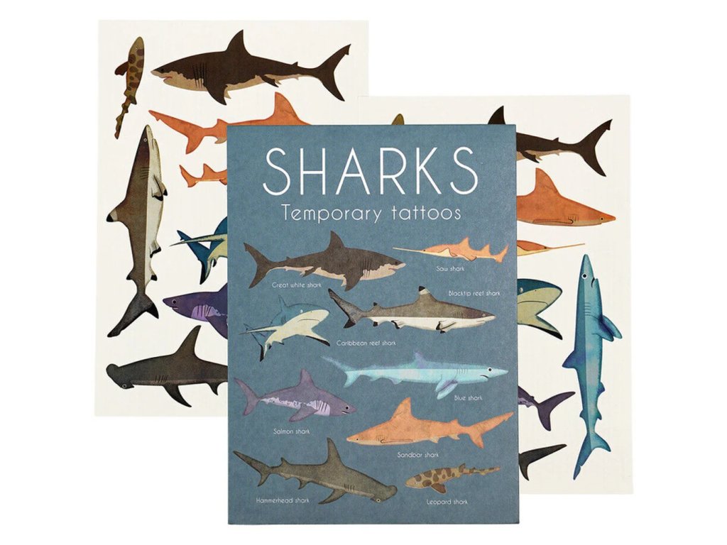 Tato dočasná tetování obsahují motivy žraloků, které si zamiluje každé dítě. - Obsahuje dva archy dočasných vílích tetování - Různé velikosti - Není určeno pro děti do 3 letDoplňkové parametry