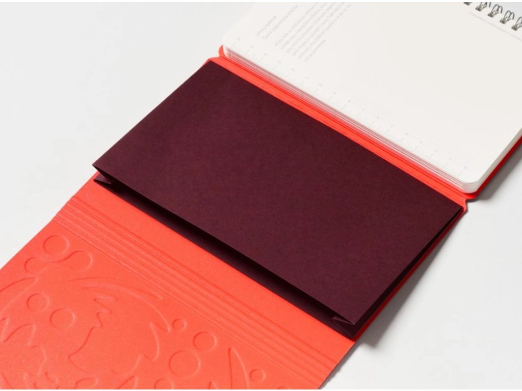 - vazba: kroužková s úzkou šedou spirálou, která nepřekáží při psaní