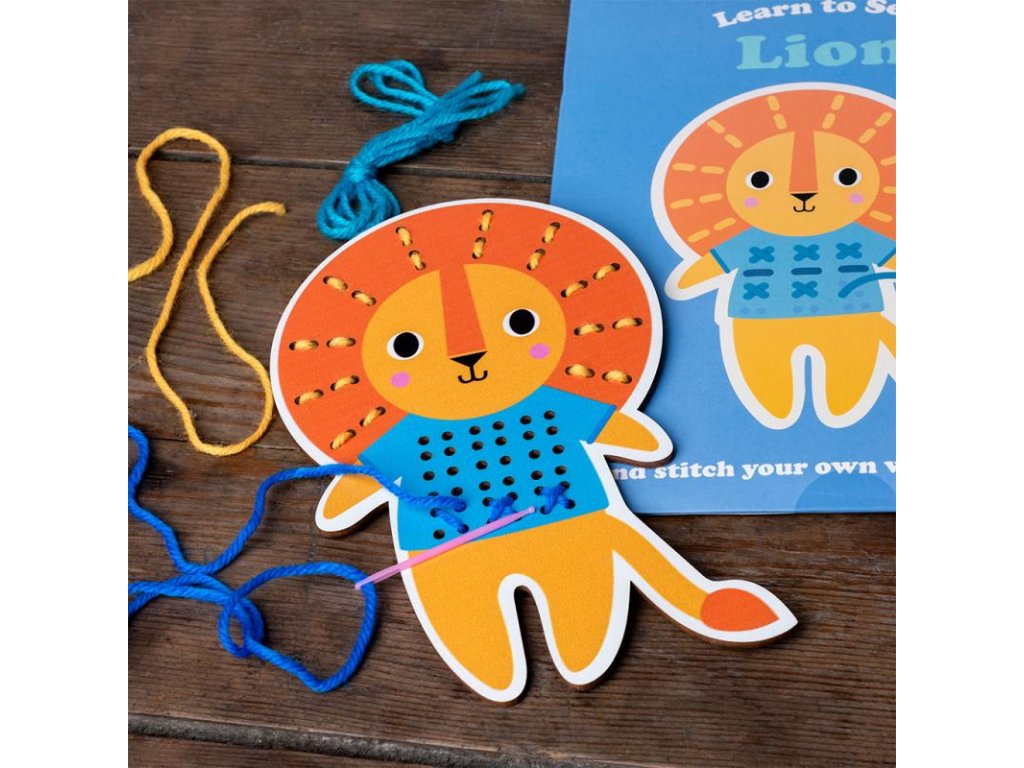 Sada je ideální pro malé milovníky zvířat a představuje krásný dárek, který spojuje zábavu s učením. Dřevěná vyšívací deska ve tvaru lva je příjemná na dotek, plastová jehla je uzpůsobena dětským rukám a barevné příze dodají hotovému výrobku hravý vzhled.
