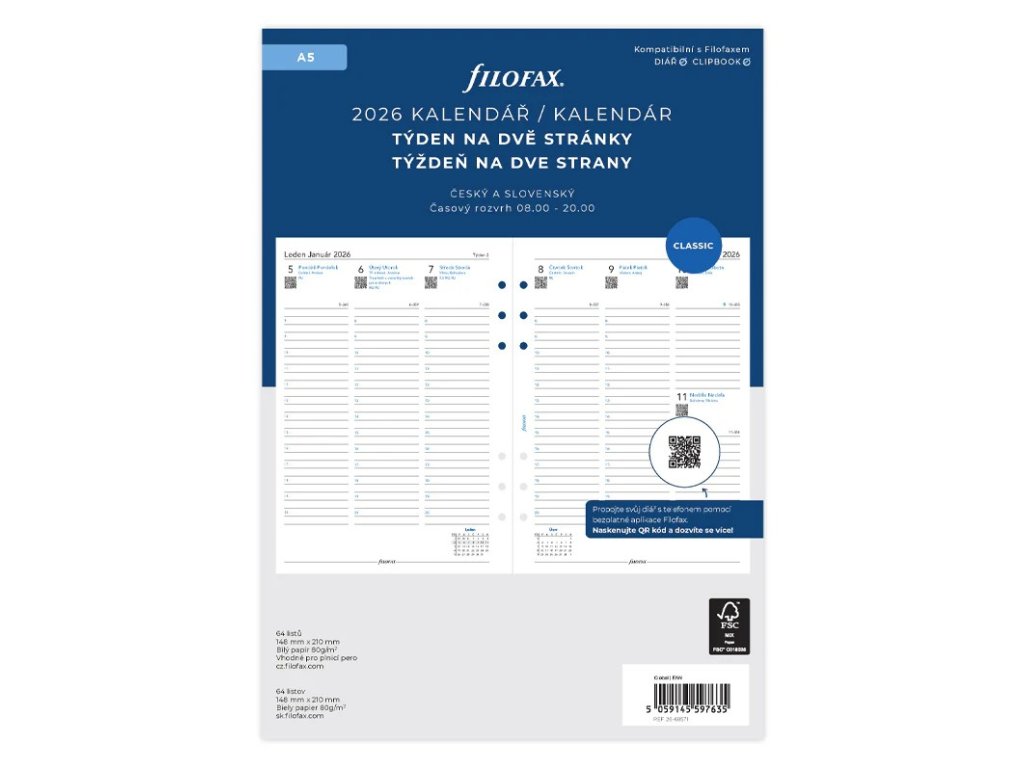 FILOFAX kalendář 2026 A5, týden /2 str.