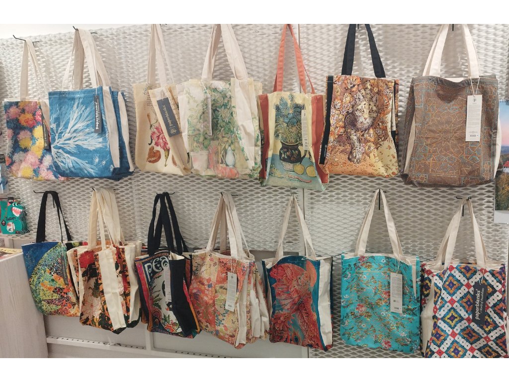 Uvedení autora na vnitřní straně tašky dodává designu autentický umělecký kontext.