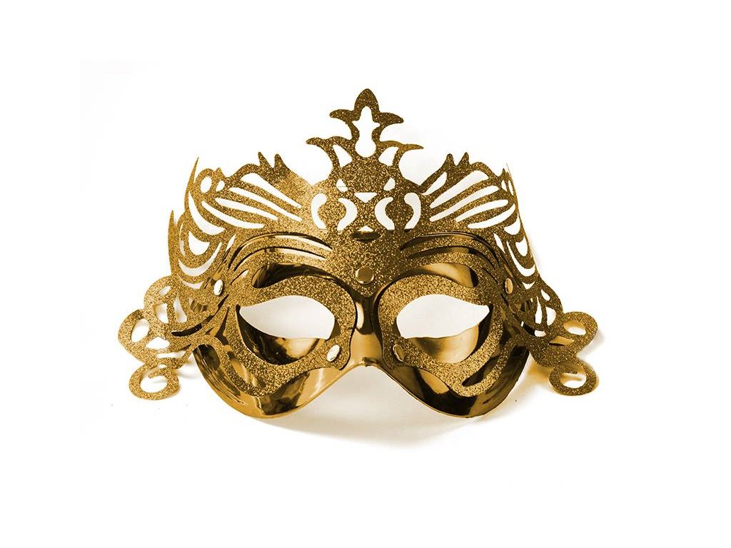 Elegantní zlatá škraboška s glittery. Velikost univerzální, na stuhuDoplňkové parametry
