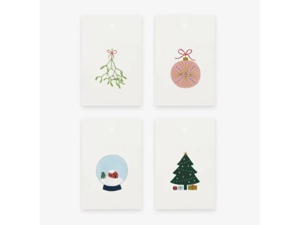 Roztomilé dárkové visačky se čtyřmi různými vánočními ilustracemi. Dárkové visačky na krémově bílém papíře. Na jednom konci mají otvor pro dárkovou stuhu. Na zadní straně není...