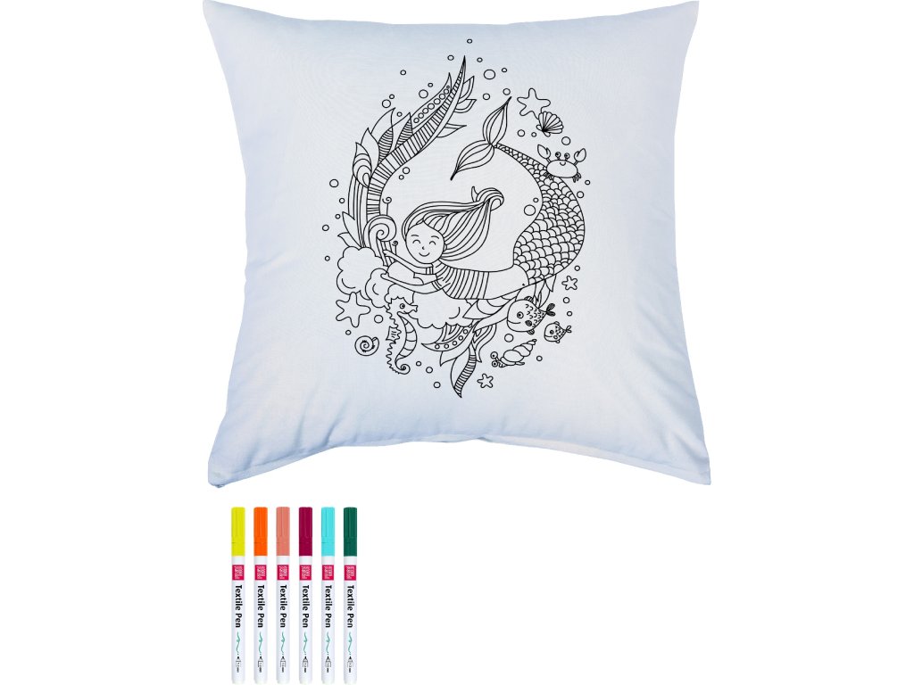 Bavlněný povlak na polštář 40x40cm s předtištěnými obrysy obrázku - 6 tenkých textilních fixů - Návod v dárkové krabičce - Díky předtištěným obrysům je barvení dětskou hrou. - Sada je ideálním tipem na dárek na Vánoce, narozeniny, vysvědčení - 100% bavlna (bílá) - Kryt se zipem - Pratelný povlak na 30 ° - Kreativní sady - Malujeme na textil - Kreativní potřeby do školky a školy - Výtvarné potřeby pro dětiDoplňkové parametry