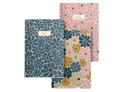 Kolekce tří sešitů - deníčků s jemnými motivy z kolekce. Matná povrchová úprava obálky. Šitá vazba.