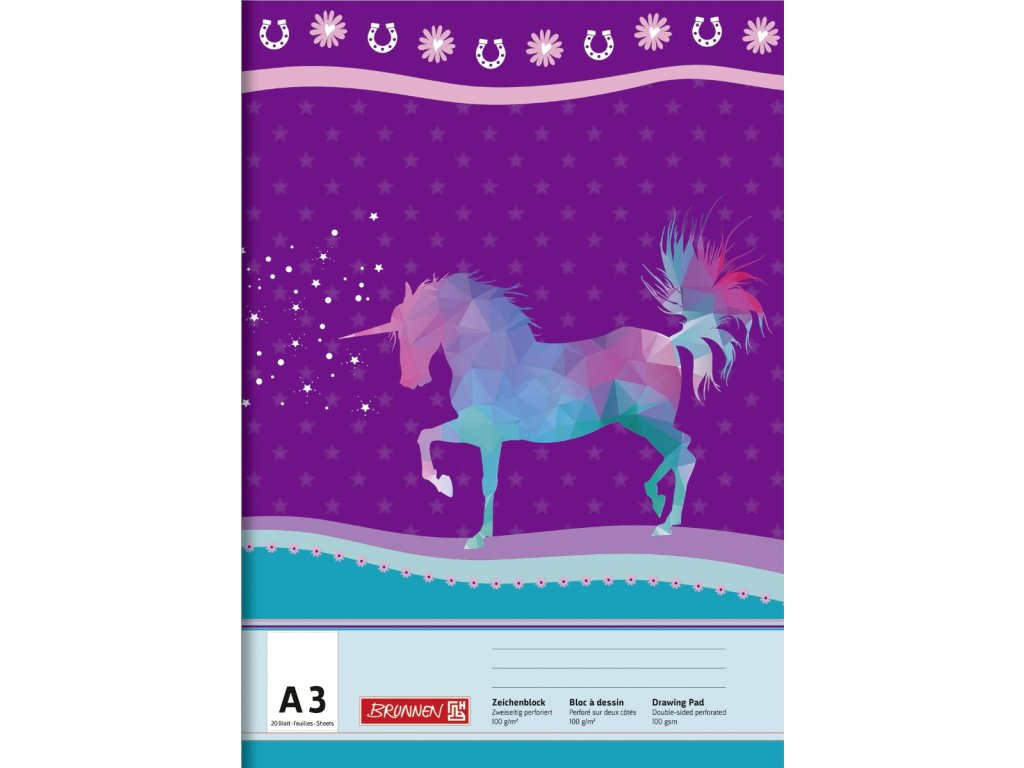 Kvalitní skicák pro školáky s motivem jednorožce na přední straně bloku. - A3 - 20 listů - 100 gsm - Kvalitní nelinkovaný skicák - Potřeby pro umělce a studenty - Kreativní skicový blok - Školní potřeby - Bloky na kresleníDoplňkové parametry
