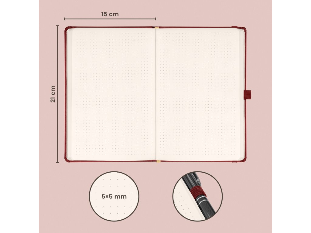 Ručně vyráběný tečkovaný zápisník Klasyk o velikosti A5 šitý nití, přichází s tvrdou vazbou potaženou plátnem, které zajišťuje, že zápisník lze snadno otevřít a položit zcela...
