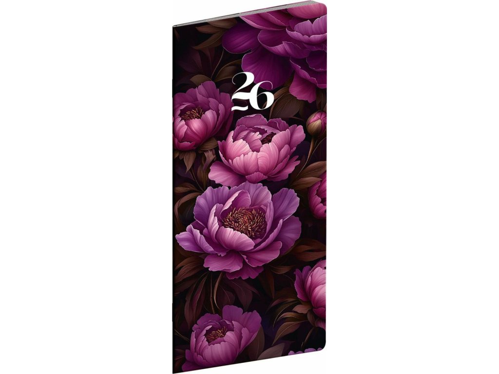 NOTIQUE Kapesní diář Fialové květy 2026, plánovací měsíční, 8 x 18 cm