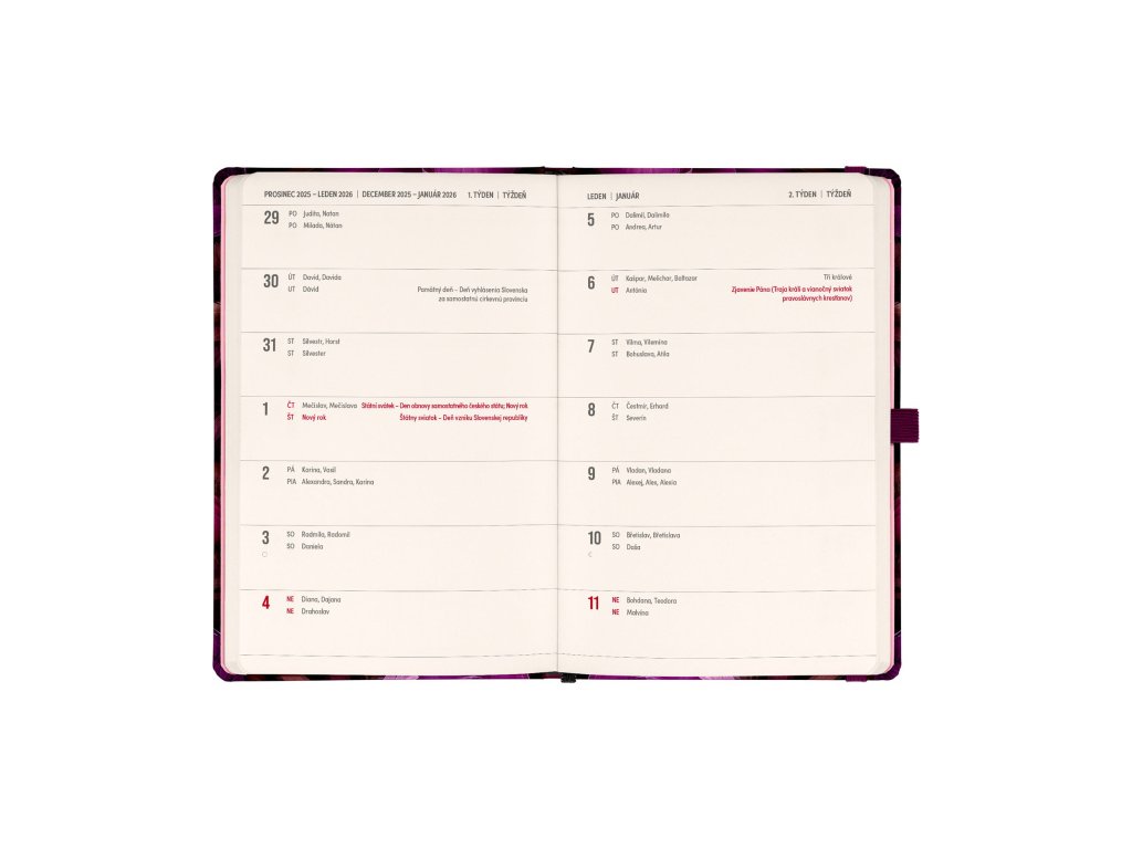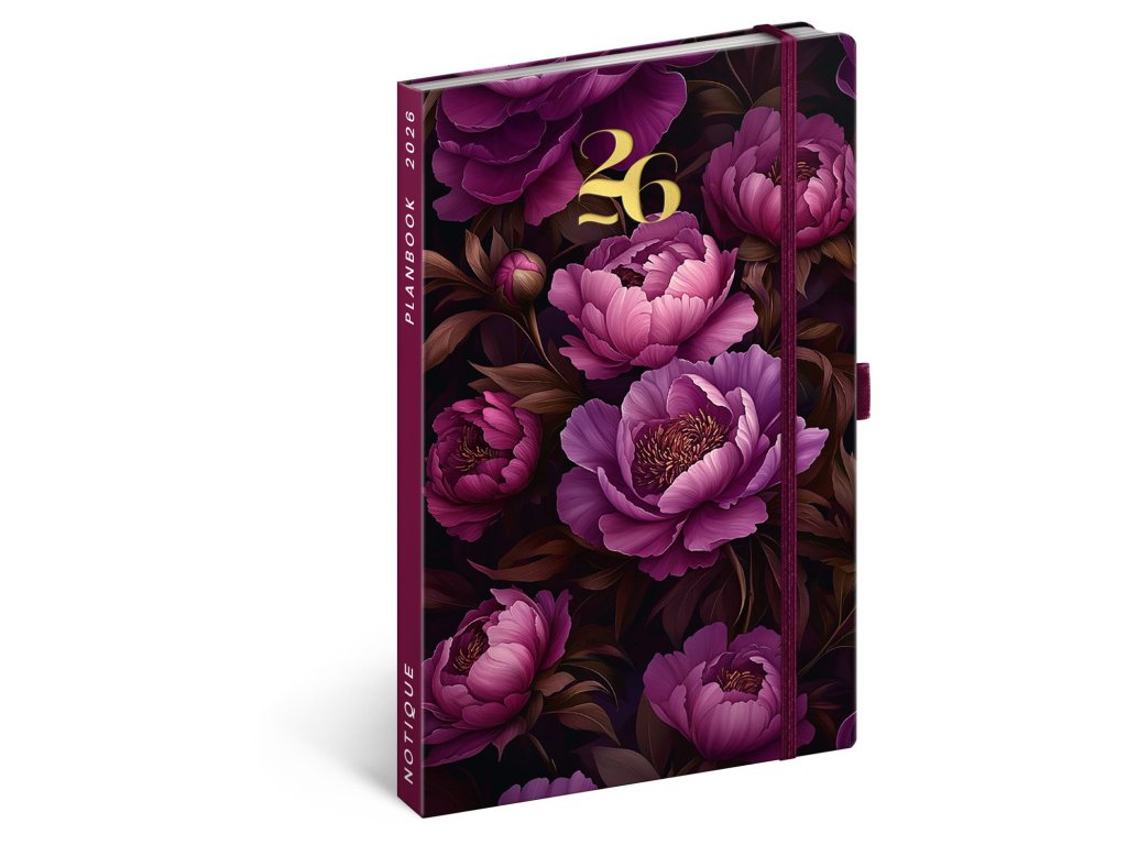 NOTIQUE Planbook diář/notes Fialové květy 2026, 13 x 21 cm