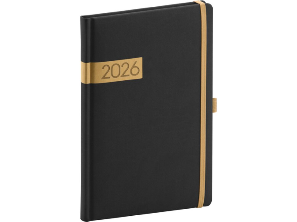 NOTIQUE Týdenní diář Twill 2026, černo-zlatý, 15 x 21 cm