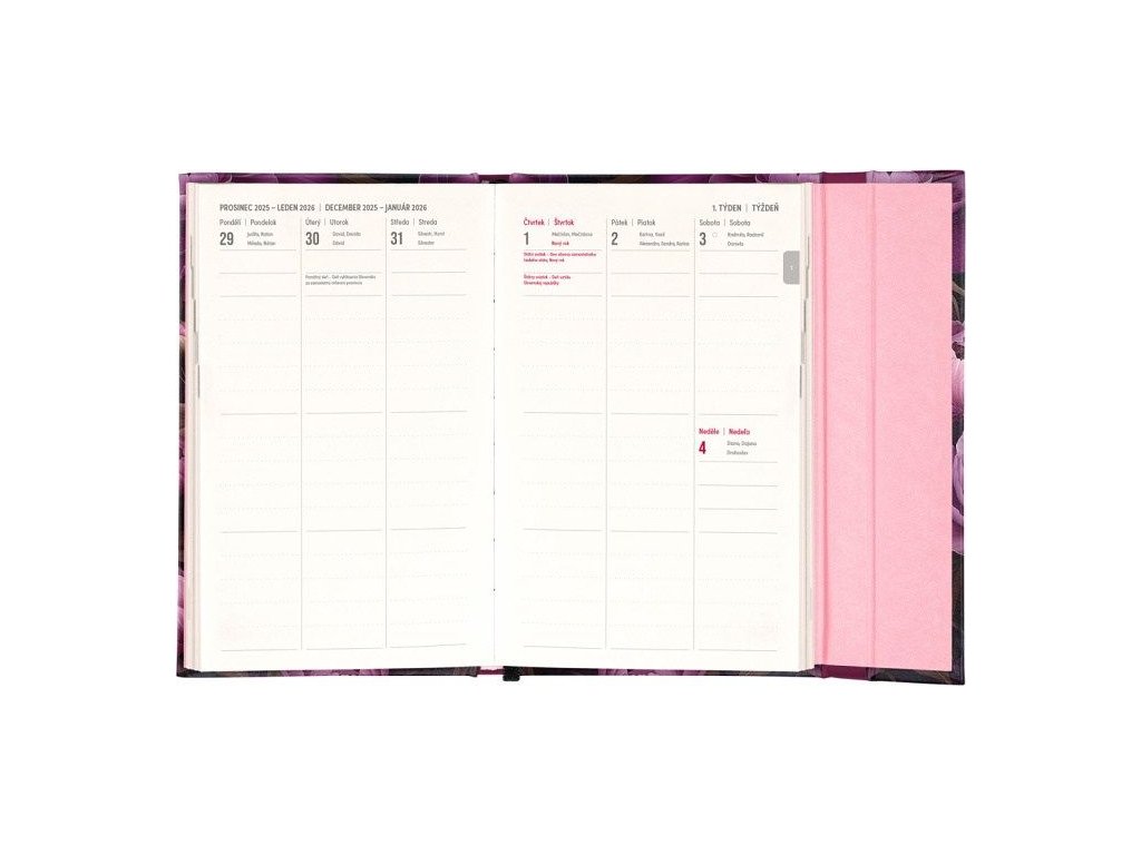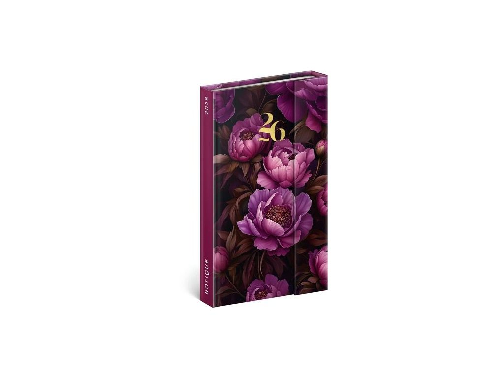 NOTIQUE Týdenní magnetický diář Fialové květy 2026, 13 x 21 cm