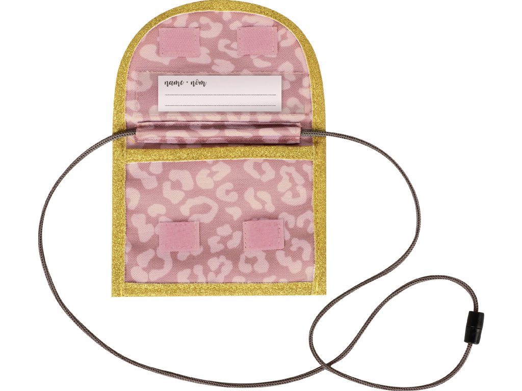 Peněženka je na suchý zip, má praktickou šňůrku na zavěšení kolem krku a štítek na jméno. Na zadní straně je navíc průhledná fólie na průkazku apod. - Vzor srst šelmy - 13,5 cm x 10 cm - Přední kapsa na zip - Růžová barva, třpytivý zlatý lem, přívěsek bambulka - Peněženka pro holkyDoplňkové parametry