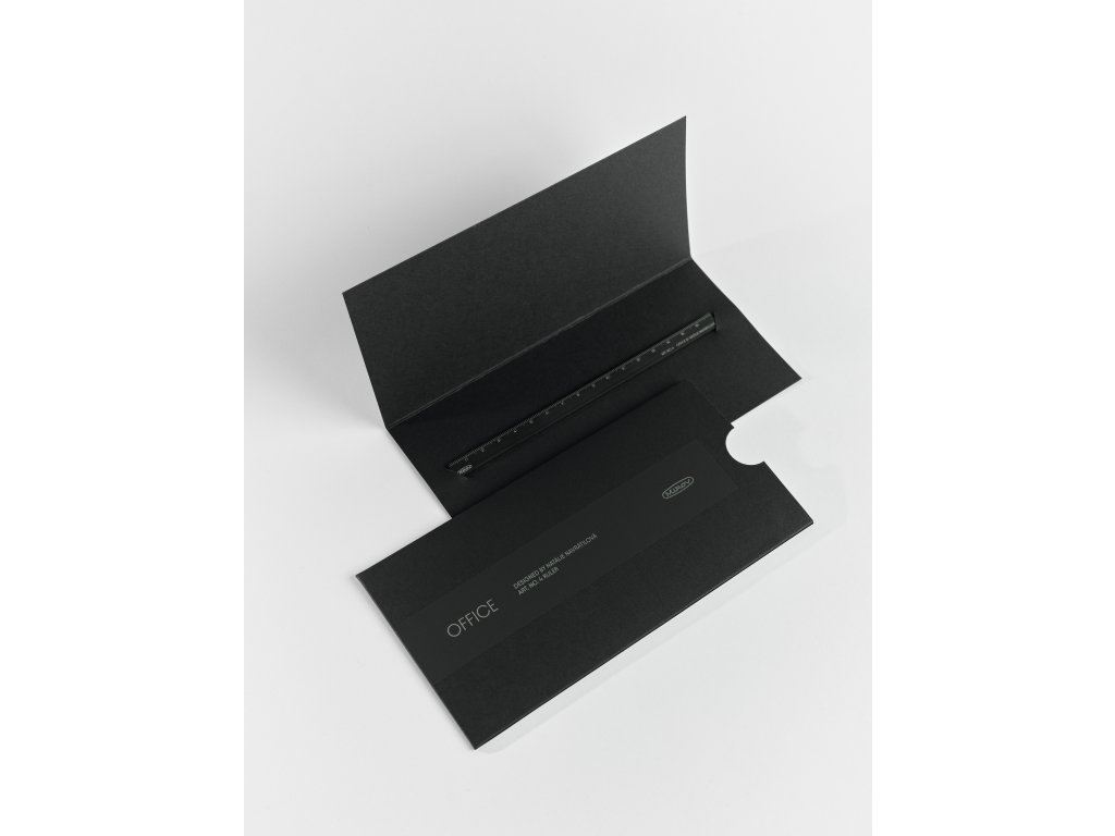 Pravítko je čtvrtým produktem kolekce Office. Na první pohled je subtilní, avšak zároveň díky tomu, že je vyrobeno z nerezové oceli, je neobyčejně pevné. Designově zajímavá povrchová úprava pravítka je DLC, která se svou tvrdostí a odolností rovná diamantu. Pro své výjimečné vlastnosti je používána pro nástroje pracující v těch nejnáročnějších podmínkách.
