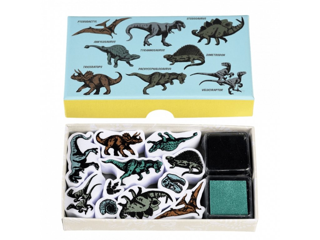 Buďte kreativní s touto sadou mini razítek Dino, která obsahuje dinosaury a zkameněliny! Tato sada je ideální pro dětské výtvarné práce a obsahuje také dva inkoustové polštářky na vodní bázi v zelené a šedé barvě.Doplňkové parametry