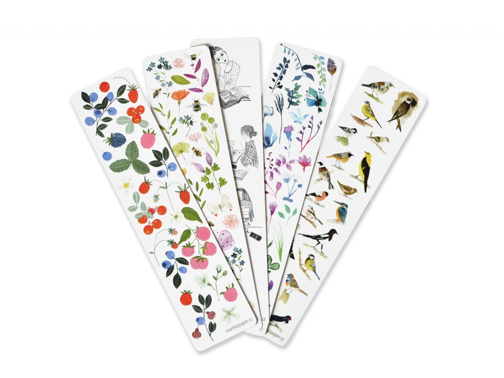 Pět záložek s jemnocitem ruční práce v pěti různých designech, abyste si mohli vybrat, jaká záložka bude nejvíce slušet zrovna rozečtené knize. Záložky jsou velké, aby do knih nezapadly, mají na výšku 21 cm a na šířku 5 cm, potisk je digitální. Zadní stDoplňkové parametry