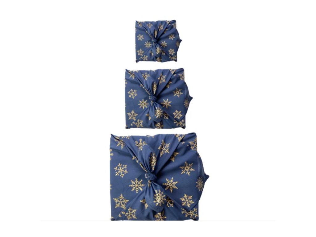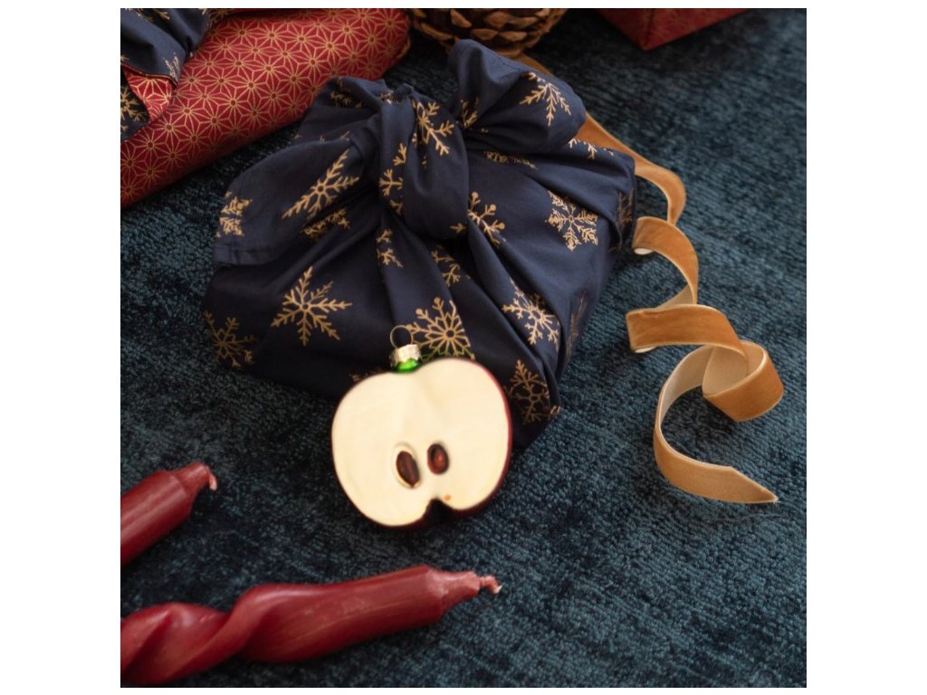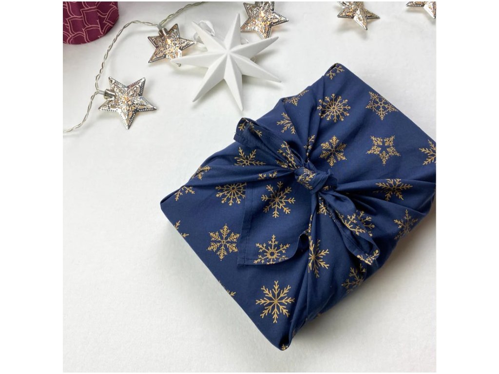 Šátek na balení dárků Furoshiki, jednostranný, M - 55x55 cm, vzor Midnight snowflakes - FabRap