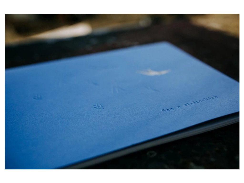 - na přední straně v pravém horním rohu je vytlačen (slepotisk) text: Sen o vlaštovkách