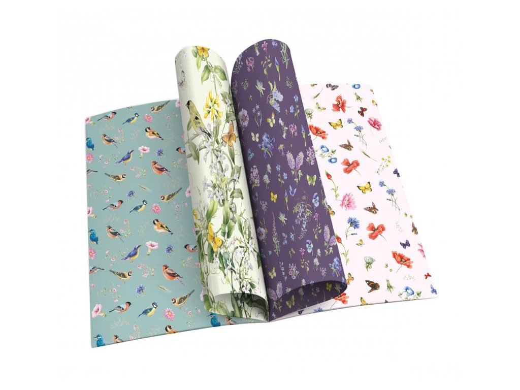 Set dárkových papírů v bloku 50x70cm, Ptáci a keře