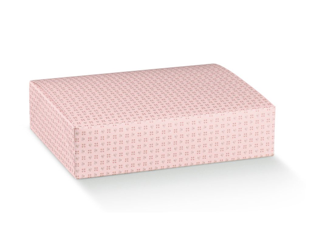 Kartonová krabička s drobným vzorem v růžové barvě na balení dobrot, dárkových předmětů, cukrářských výrobků.. - Designová krabička je dodávána rozložená, snadno ji složíte podle vyznačených ohybů. - Zabalte dárek elegantně - Potřeby na svatbu - Dárková krabička pro děti - Krabice krabičky - Papírová svatební krabička - Roztomilá krabička na malé dárky - Originální dárková krabička pro miminka Bloom rosaDoplňkové parametry
