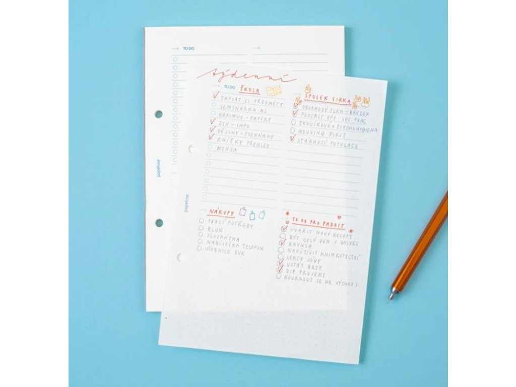 - tip: Kromě linek na úkoly tu najdete také prostor na poznámky a děrování pro uchycení do desek.