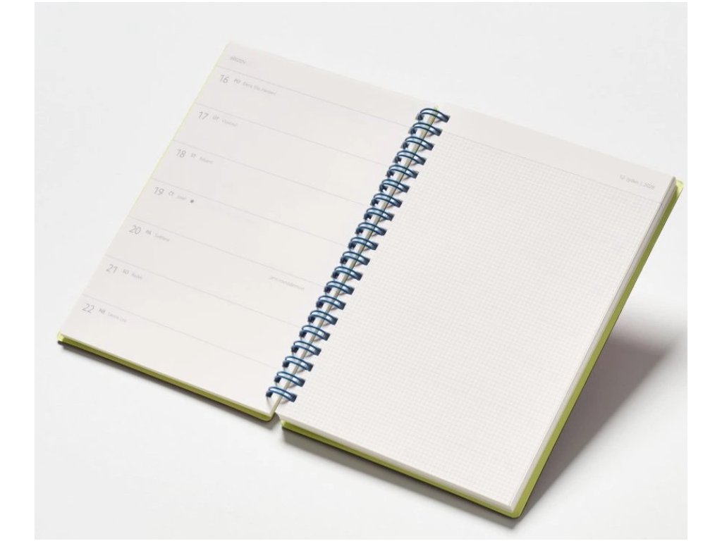 - vazba: kroužková s úzkou modrou spirálou, která nepřekáží při psaní