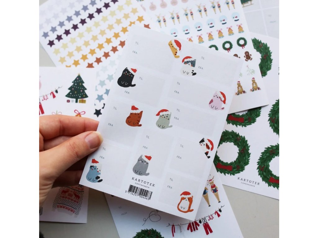 Vánoční samolepicí jmenovky Kartotek - Vánoční kočky