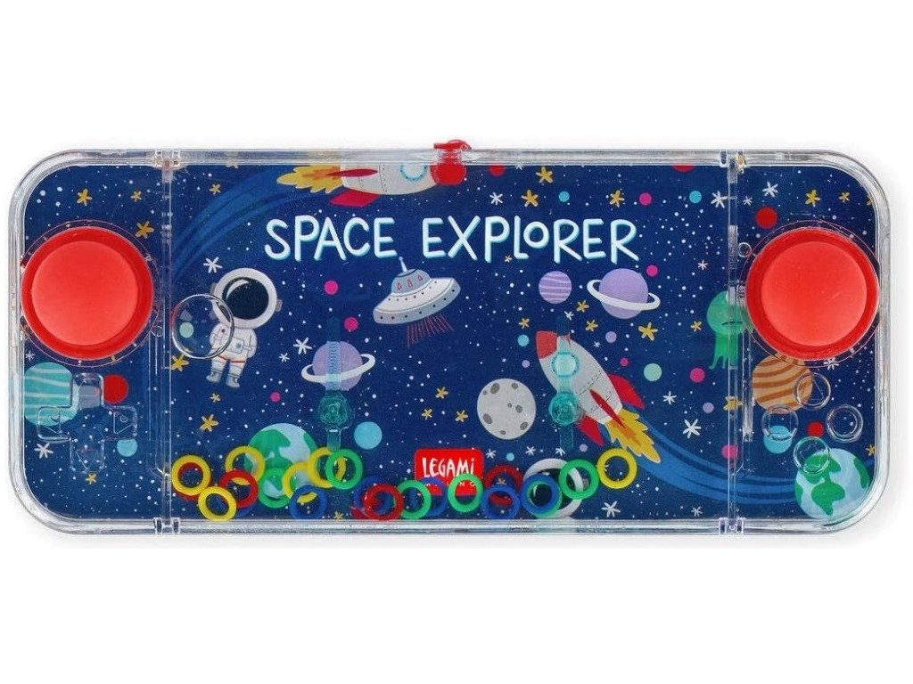- tradiční dětská mini vodní hra s vesmírnou tematikou, která vypadá jako konzole, ale nepotřebuje baterii