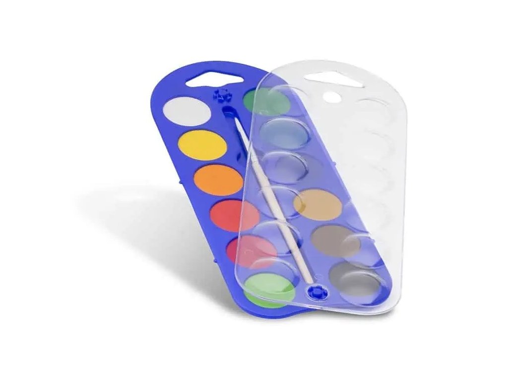Vodové barvy obsahují vysoké množství kvalitního pigmentu (čím více pigmentu výrobky obsahují, tím jsou barvy intenzivnější). 12 barev + štětec ? 25mm barvy jsou rozpustné v malém množství vody. Barvy jsou vhodné pro klasické techniky (malba na papíře aDoplňkové parametry