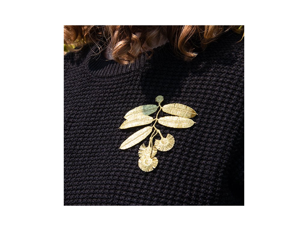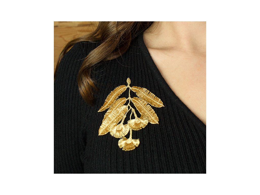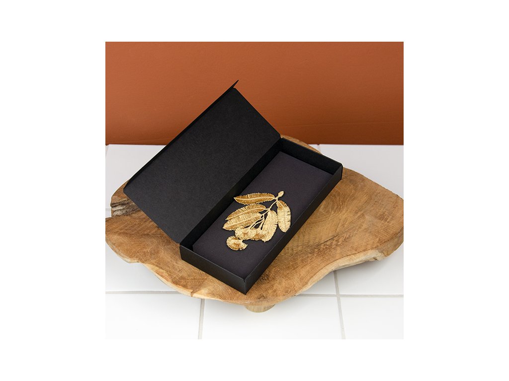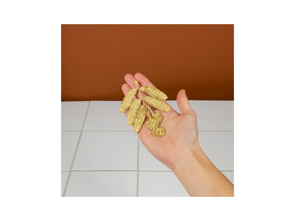 Proces výroby je téměř stejně magický jako samotná příroda: listy vyšíváme na speciální látku, která se rozpouští ve vodě. Po důkladném opláchnutí, puf, pozadí zmizí a listy se mohou volně a přirozeně pohybovat. Stejně jako skutečná rostlina, ale navždy.