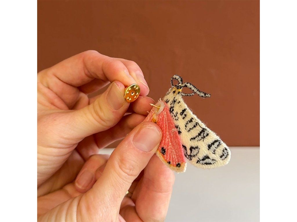 Proces výroby je téměř stejně magický jako samotná příroda: brože vyšíváme na speciální látku, která se rozpouští ve vodě. Po důkladném opláchnutí, puf, pozadí zmizí a křídla se mohou volně a přirozeně pohybovat. Stejně jako skutečná můra, ale navždy.