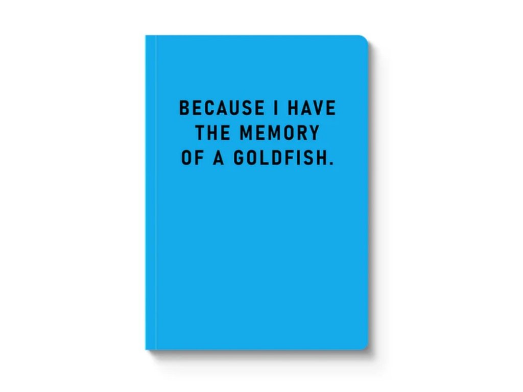 Zaznamenejte si myšlenky a nápady do zápisníku Memory Of A Goldfish! Tento sešit A5 má 172 linkovaných stránek, dokonalou vazbu a je navržen tak, aby vám pomohl vyrovnat se s tou špatnou pamětí.